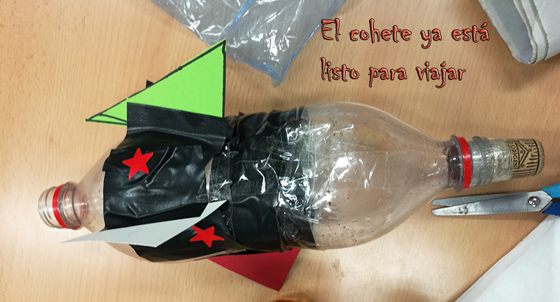 · Actividad científica: Construimos un cohete con propulsión de vinagre y bicarbonato. Actividad cooperativa con alumnado ayudante de 5º curso de Primaria.