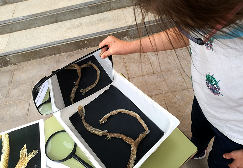 con la observación de una camisa de culebra que nos ha regalado nuestro amigo y